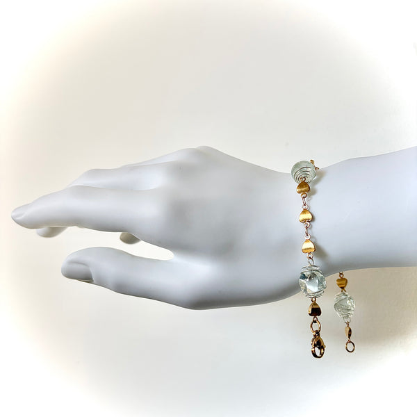 - Matière : les 4 billes sont en verre, tout le reste est en acier inoxydable doré